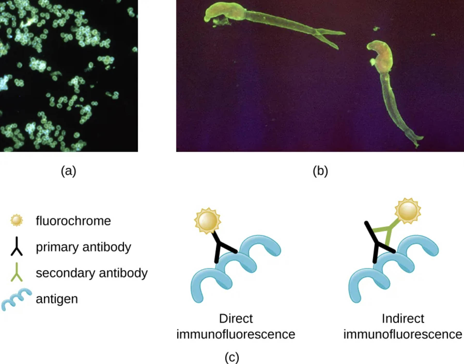 Primary Antibody: This Y-shaped protein is designed to specifically recognize and bind to a unique antigen found on the pathogen. In direct methods, it carries the dye, whereas, in indirect methods, it serves as a bridge between the antigen and the secondary antibody.