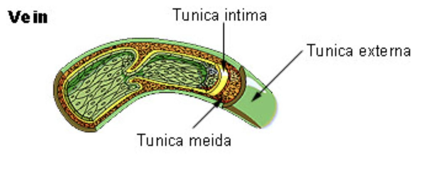 Tunica meida: Labeled in the diagram as the middle layer, this section is composed of smooth muscle and elastic fibers, though it is significantly thinner than its counterpart in arterial walls. Its primary function is to provide the vessel with the tone necessary to move blood forward without having to resist extreme pressures.